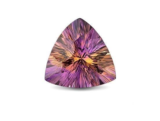 Ametrine, one of the rarest types of transparent quartz, combines two colors: amethyst’s purple and citrine’s orange-to-yellow.