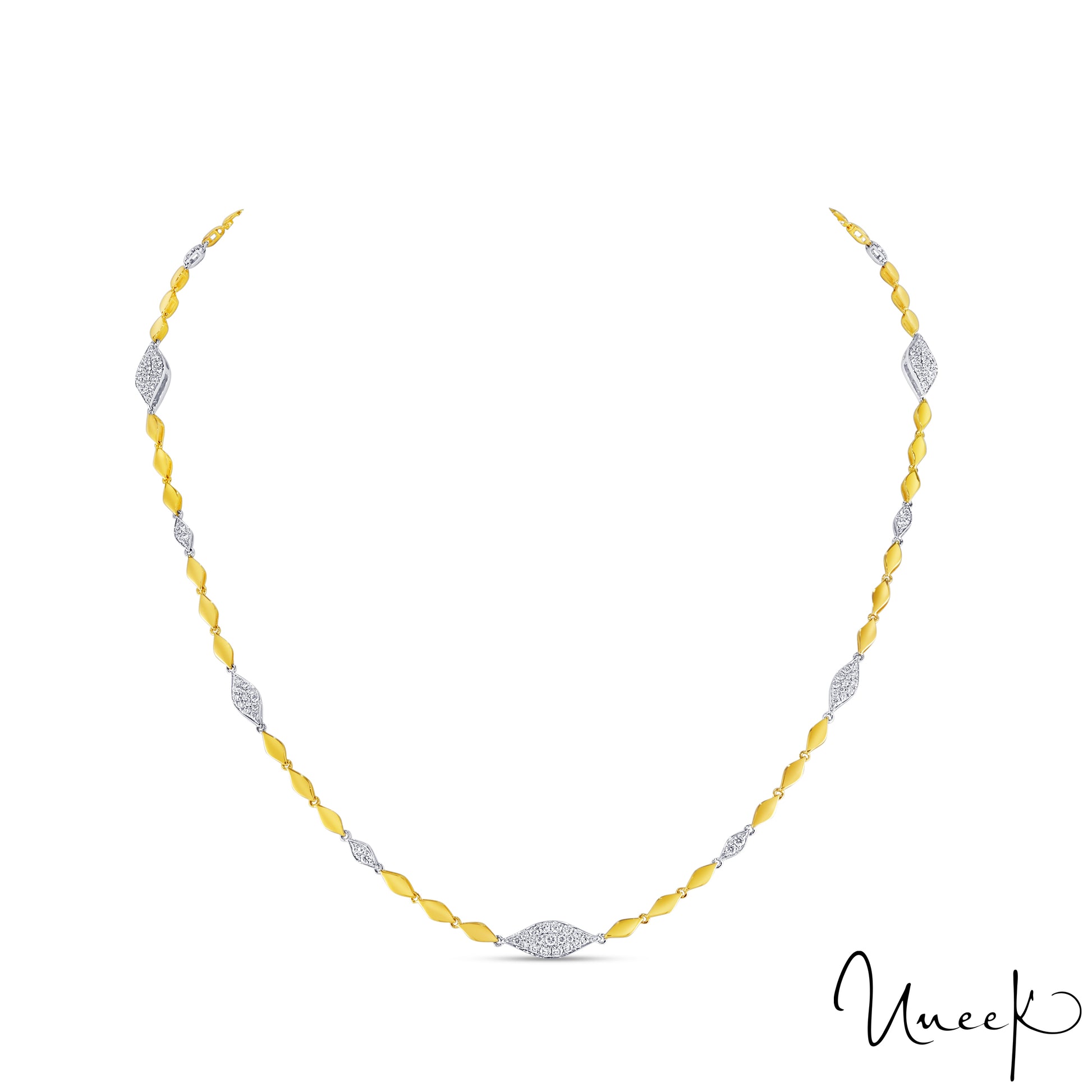 Lady's Two-Tone 18 Karat Station Necklace Length 19 With 242 = 2.68Twt Round G/H Si2 Diamonds