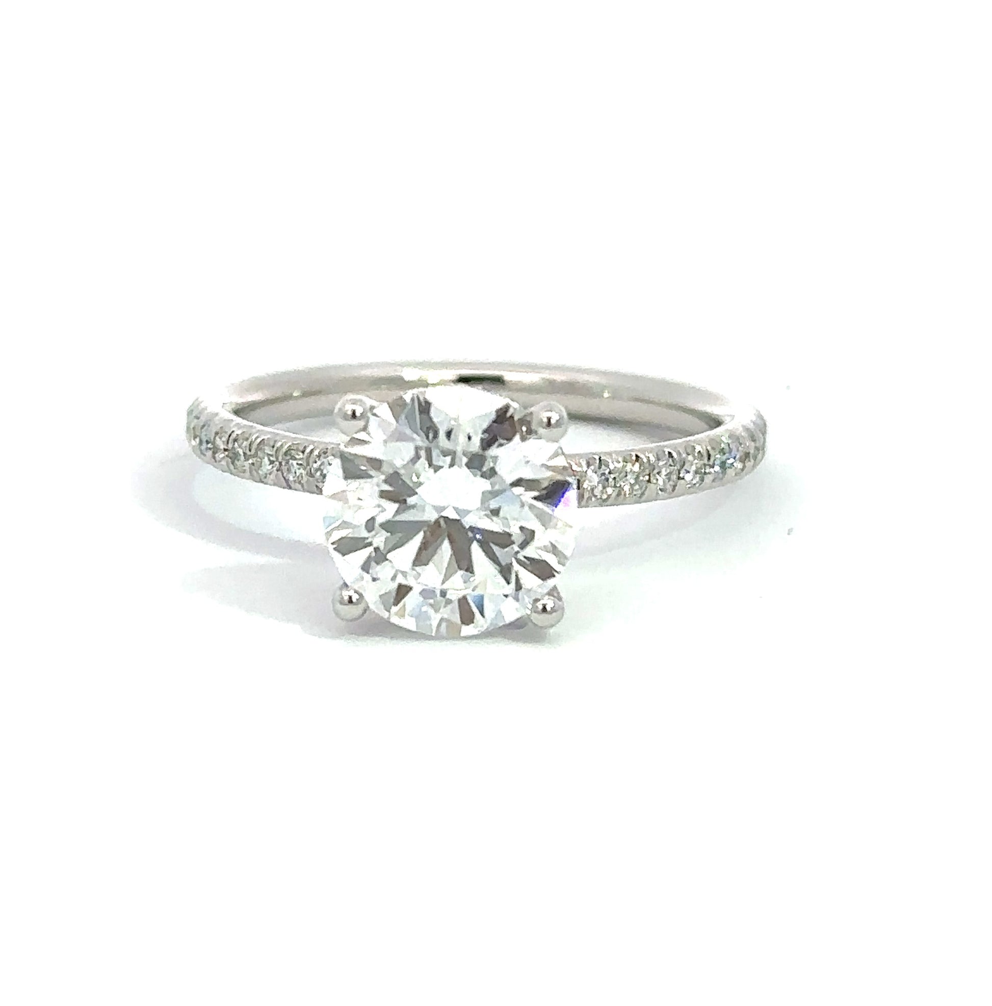 Lady's White 14 Karat Hidden Halo Lab Grown Engagement Ring Size 6.5 With One 2.63Ct Round E Vs1 Diamond And 52=0.30Tw Round G/H Si2 Diamonds