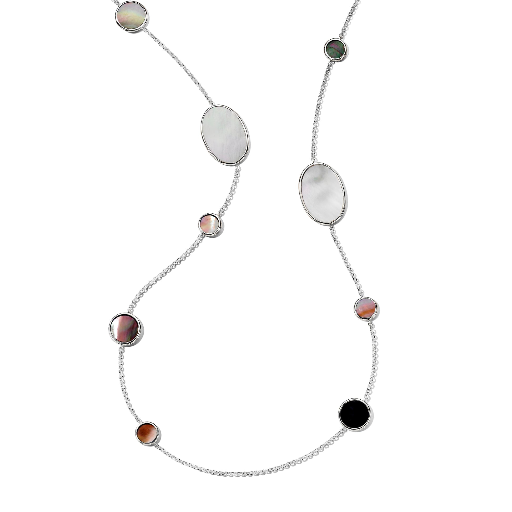 Lady's White Sterling Silver Station Necklace Length 37 With O Rock Crystals