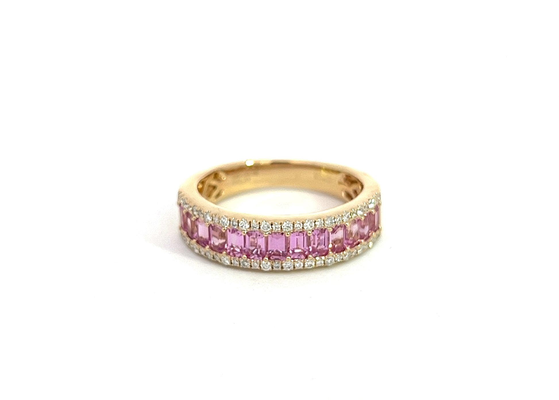 Lady's Yellow 14 Karat Channel Fashion Ring Size 6.5 With 13 1.23Tw Emerald Sapphires And 54 0.19Tw Emerald H/I Si2 Diamonds