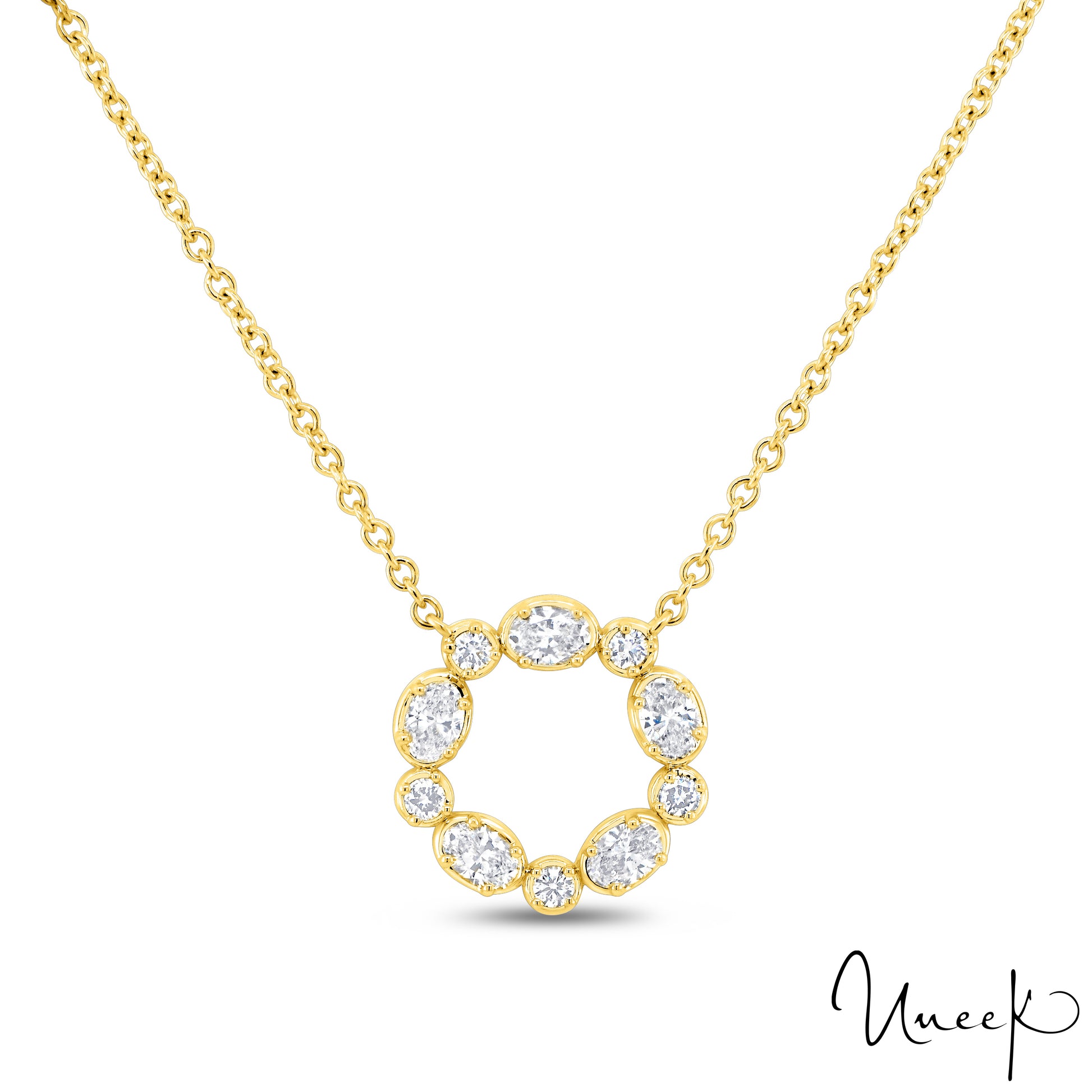 Lady's Yellow 18 Karat Free Form Pendant Length 18 With 5 = 0.16Tw Round G Vs2 Diamonds And 5 = 0.69Tw Oval G Vs2 Diamonds